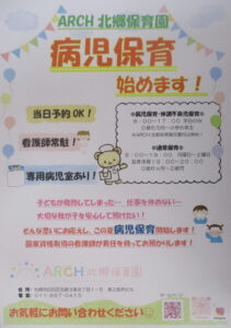 今年の7月から病児保育、体調不良児保育を開始いたします。